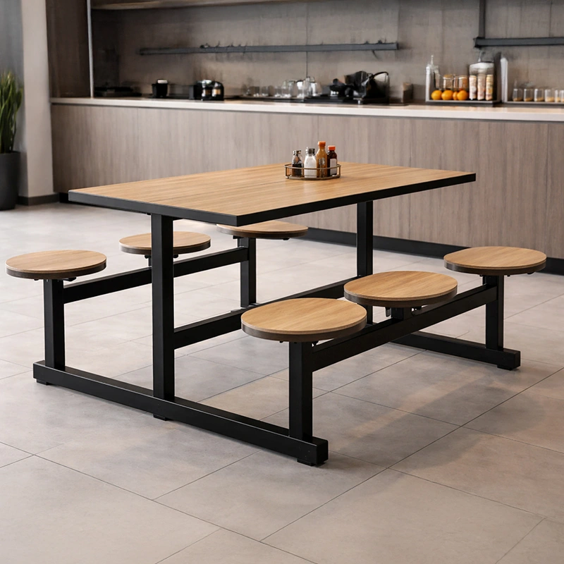 Com opções em aço, MDF, polipropileno, madeira, tecidos e espuma PU, os móveis coletivos para alimentação da empresa aliam estética e funcionalidade.